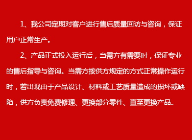 嚴(yán)格質(zhì)量管理,完善產(chǎn)品售后服務(wù)是塑造企業(yè)形象、取信于用戶的根本。多年的實踐,公司形成了一整套行之有效的質(zhì)量管理及售后服務(wù)管理體系,為此,公司鄭重承諾: